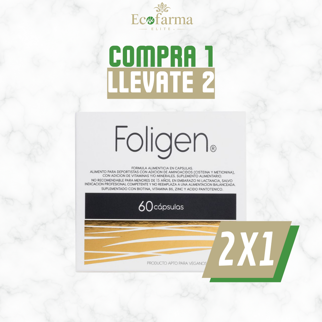 Foligen es un suplemento alimenticio en cápsulas, desarrollado para complementar una dieta equilibrada en personas que desean mejorar su bienestar desde adentro hacia afuera. Su fórmula avanzada combina L-metionina, L-cisteína, biotina, zinc y otras vitaminas esenciales que contribuyen al mantenimiento saludable del cabello, piel y uñas.